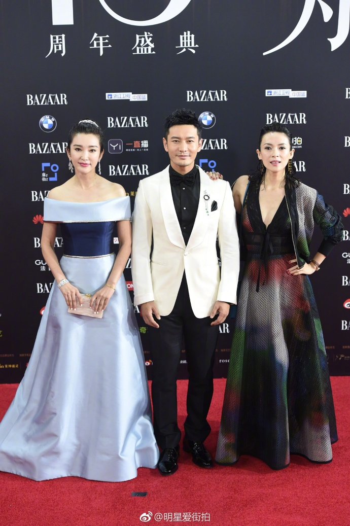 黃曉明一邊一個(gè)大花旦,“艷福不淺”??!章子怡穿低胸網(wǎng)紋裙半露香肩展女王氣質(zhì),李冰冰頭戴王冠著一字肩湖藍(lán)公主裙走起甜美風(fēng),我說最佳男閨蜜一定要頒給教主,雖然這張圖把他拍成1米6。
