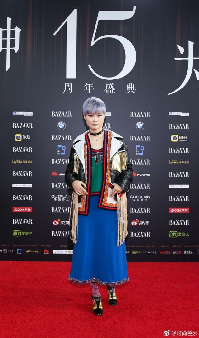 紫色長襪、寶藍(lán)長裙、墨綠上衣、黑皮流蘇外套、奶奶灰短發(fā),混搭玩到這個(gè)程度的還有誰?真心敗給李宇春。