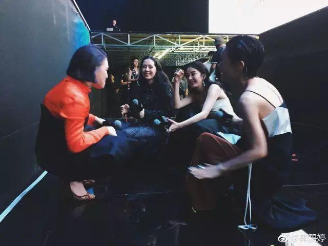 劉濤離姐妹們站的老遠(yuǎn),和蔡依林相談甚歡。