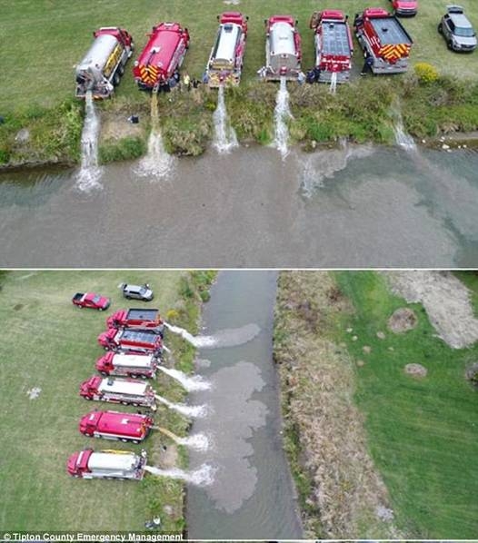 印第安納州環(huán)保當(dāng)局表示,該工廠的牛奶不會(huì)對附近的人類或野生動(dòng)物構(gòu)成危險(xiǎn),只是得盡快處理以免事情進(jìn)一步擴(kuò)大。事故發(fā)生后,有關(guān)人員將干草包投放到河中以防止牛奶進(jìn)一步擴(kuò)散,而清理公司則從河水中清除了約1.4萬加侖(約53噸)的水和牛奶混合物。