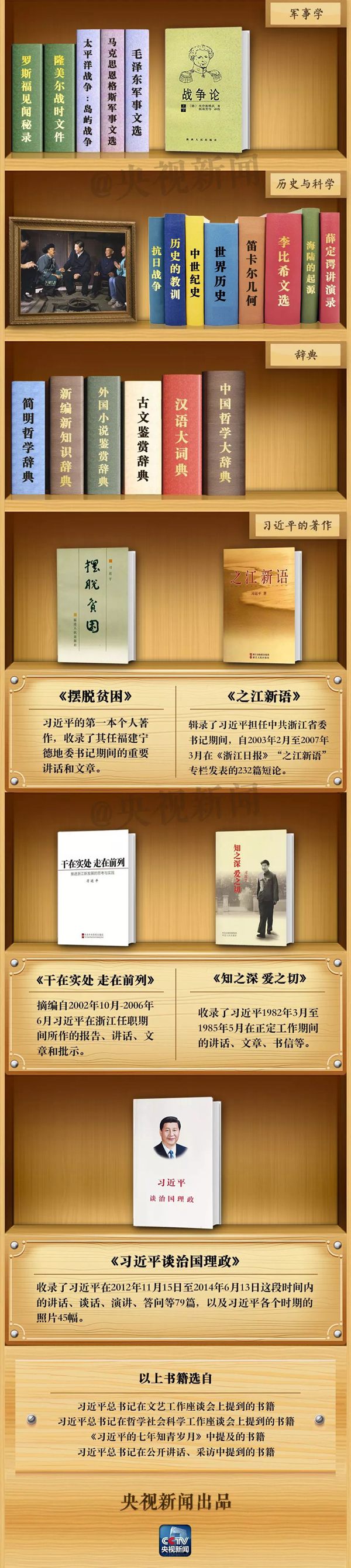 在這個(gè)節(jié)日,央視新聞定制了習(xí)近平總書記的“書柜”,來(lái)看看總書記的“書單”和讀書感悟吧。