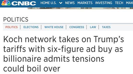 可隨著之后特朗普對中國等國發(fā)動貿(mào)易戰(zhàn)的行為,以及相關(guān)惡果的逐漸顯現(xiàn),科赫家族的最新表態(tài)也與今年1月的言論形成了鮮明的對比。