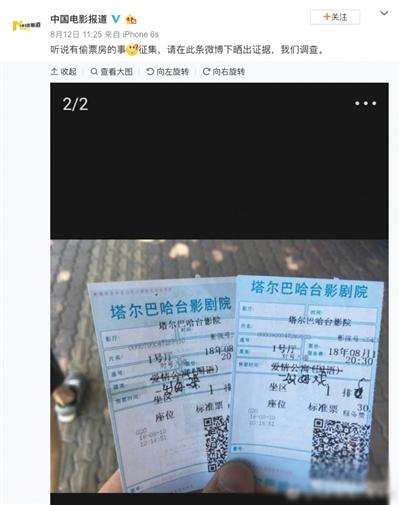 8月12日下午,CCTV6電影頻道旗艦欄目官方微博中國電影報道發(fā)微博稱,“聽說有偷票房的事,征集,請在此條微博下曬出證據(jù),我們調(diào)查?!迸鋱D中,是兩張《愛情公寓》的電影票,但電影名字被人工劃掉改成了《一出好戲》。在該微博的評論區(qū),也有不少網(wǎng)友聲明自己遭遇同樣狀況。接著,“愛情公寓涉嫌偷票房”的話題迅速登上熱搜榜。