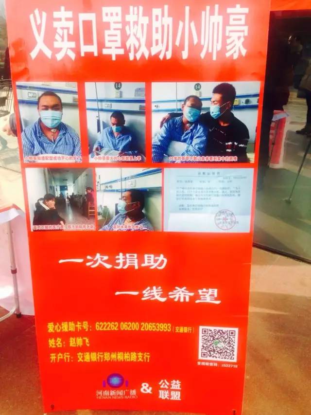 河南新聞廣播持續(xù)關(guān)注16歲白血病少年趙帥豪籌集50萬元移植費的進(jìn)展。由我們和公益同盟一起發(fā)起的口罩義賣活動仍在進(jìn)行中。在花園路丹尼斯義賣點,王女士帶著自己12歲的兒子柳義獻(xiàn)上了一份愛心。