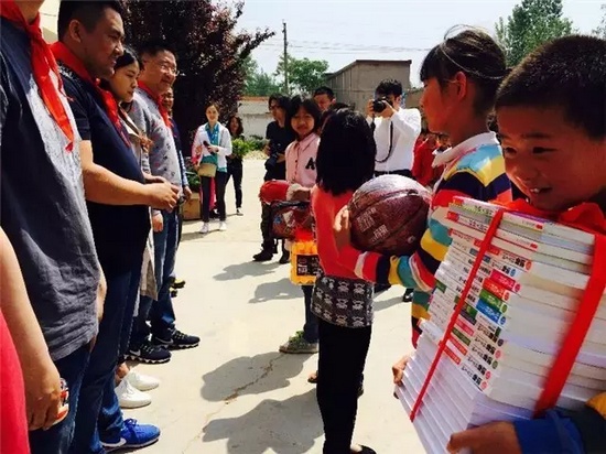 根據(jù)孩子們的現(xiàn)實需求和愿望,我們此次特別為孩子帶來了千本圖書以及腰鼓樂器、足球等體育用品,并捐獻(xiàn)給學(xué)校。