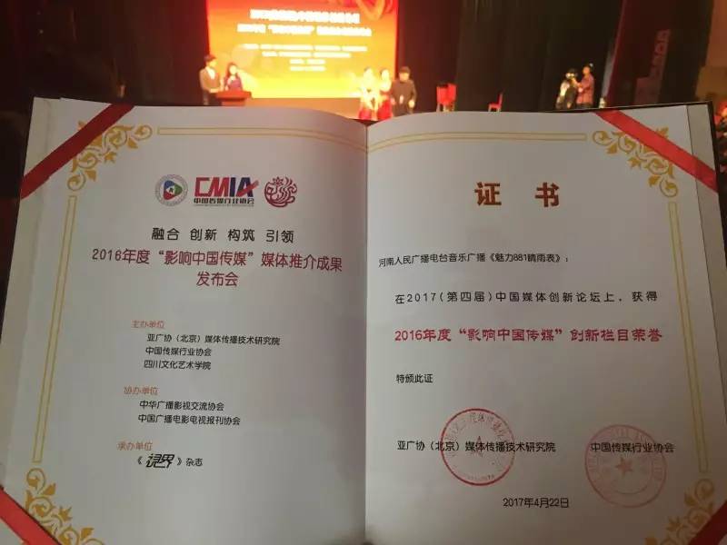 魅力881河南音樂廣播獲“最具創(chuàng)新力媒體”獎