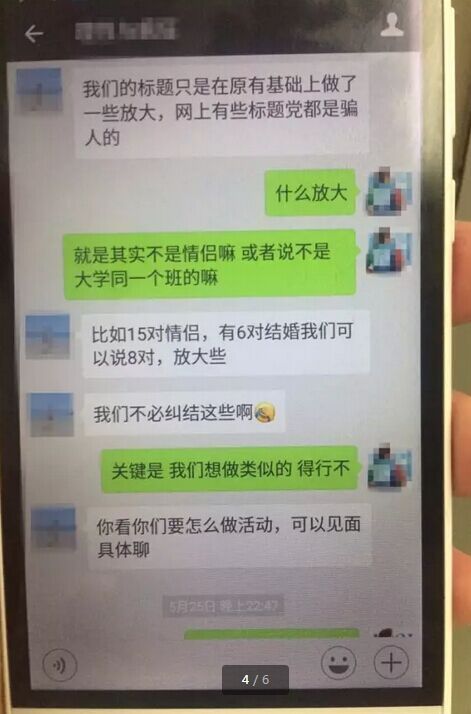 面對(duì)記者對(duì)“一個(gè)班15對(duì)情侶”提出的諸多疑問(wèn),對(duì)方直接回答,“媒體報(bào)道說(shuō)有,就一定是這么回事?!薄拔覀儾槐卦偌m結(jié)這些?!彼髞?lái)承認(rèn)有些標(biāo)題在原有的基礎(chǔ)上做了一些放大,“比如15對(duì)情侶,有6對(duì)結(jié)婚我們可以說(shuō)8對(duì),放大些。”
