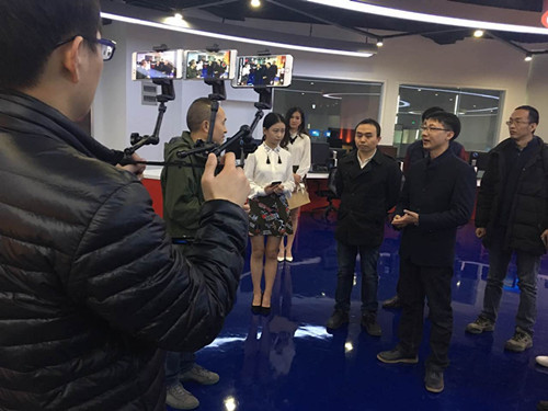 一點(diǎn)資訊、映象網(wǎng)的徐總和一步用車的領(lǐng)導(dǎo)正在暢聊中! 同步分發(fā)平臺來進(jìn)行直播 話說我們的工作人員也相當(dāng)敬業(yè)呢!