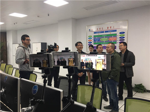 咱這個(gè)全媒體演播中心,和傳統(tǒng)的演播中心完全不同,這里沒有工作人員,負(fù)責(zé)錄制的是三臺機(jī)器人。
