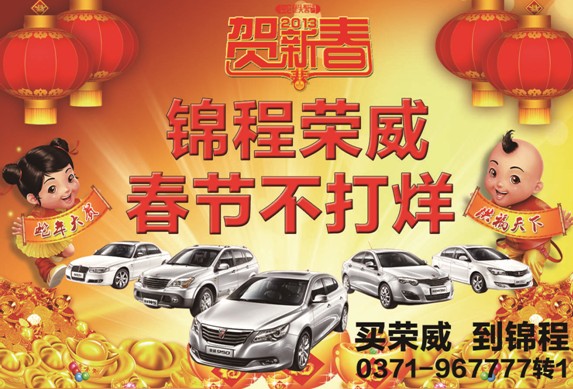 新春佳節(jié)到來之際,小編從河南錦程汽車銷售服務有限公司了解到,河南錦程榮威春節(jié)不打烊,和您一起過共度佳節(jié)。春節(jié)期間2月9日(除夕)-16日(初七),凡購車客戶均可獲得錦程送出的新春大禮包——年貨。錦程榮威推出了易享貸,更有超實惠兩年半零利息上汽金融政策,助您開車過年。更多優(yōu)惠車型請咨詢:0371--967777轉1.