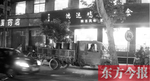 每天晚上10點左右,一對來自中牟的夫妻就開著一輛機動三輪車來店里拉泔水,同時還會將店里的其他垃圾也清走。