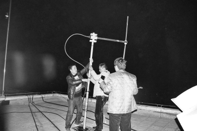 信號消失,無法通過儀器進一步定位,只能使用“笨辦法”,爬樓頂找天線。身材較瘦的郭建成被同事托上一棟樓的電梯機房房頂,在夜幕下借助微弱的燈光,用望遠鏡反復(fù)尋找,終于在小區(qū)5號樓B座一單元樓頂發(fā)現(xiàn)了黑電臺的天線。