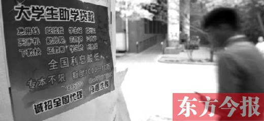 “親愛(ài)的同學(xué)們,還在為每個(gè)月超支的生活費(fèi)擔(dān)心嗎?還在為沒(méi)錢(qián)買(mǎi)‘愛(ài)瘋’著急嗎?還在為沒(méi)錢(qián)沒(méi)法‘說(shuō)走就走’失落嗎?別發(fā)愁,看這里,無(wú)抵押貸款,金額500到5000元,六個(gè)月內(nèi)還清,絕無(wú)壓力?!?/p>
