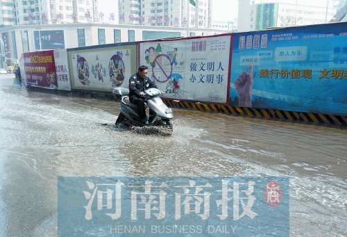 3月26日,鄭州晴空萬里,然而紫荊山路上卻多出一條百米長(zhǎng)“河”。當(dāng)天上午12時(shí),紫荊山路與東大街交叉口,北向南方向的綠燈亮后,行人穿過東大街,卻被路南的一條“河”攔住去路。