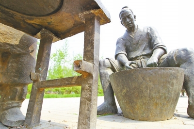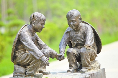 其中,第一組雕塑體現(xiàn)的是一個(gè)小男孩和一個(gè)小女孩在一塊石板上玩耍的場(chǎng)景,但十分刺目的是,小男孩右胳膊從腕關(guān)節(jié)上方處被鋸掉,右手不知去向,同時(shí)小女孩的兩個(gè)羊角辮也被鋸了一半;第二組是一個(gè)老年人和一個(gè)年輕人在切磋技藝的場(chǎng)景,但所用桌子的兩個(gè)桌牚均被鋸掉;第三組中,圍繞方桌飲酒賦詩的幾位老者所坐椅子靠背均被掰掉。