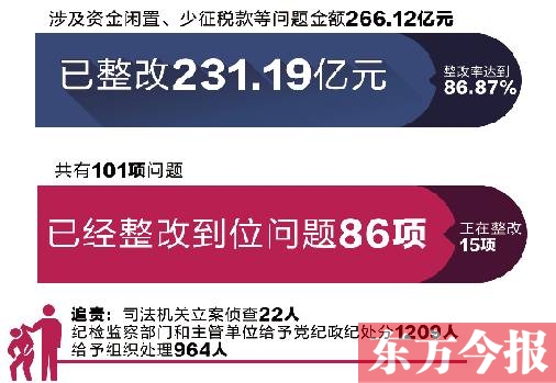 從問(wèn)題金額看,審計(jì)工作報(bào)告中涉及資金閑置、少征稅款等問(wèn)題金額266.12億元,已經(jīng)整改231.19億元,整改率達(dá)到86.87%。 從問(wèn)題數(shù)量看,審計(jì)工作報(bào)告中共有101項(xiàng)問(wèn)題,已經(jīng)整改到位問(wèn)題86項(xiàng),正在整改15項(xiàng)。 據(jù)悉,對(duì)于審計(jì)移送的違法違規(guī)問(wèn)題,司法機(jī)關(guān)立案?jìng)刹?2人,紀(jì)檢監(jiān)察部門(mén)和主管單位給予黨紀(jì)政紀(jì)處分1209人,給予組織處理964人。其中,對(duì)企業(yè)或個(gè)人騙取生活補(bǔ)貼資金問(wèn)題,市縣監(jiān)察機(jī)關(guān)、業(yè)務(wù)主管部門(mén)在收回補(bǔ)貼資金1970萬(wàn)元的同時(shí),給予當(dāng)事人、有關(guān)經(jīng)辦人員黨紀(jì)政紀(jì)處分299人,給予誡勉談話等組織處理219人。(記者 梁新慧)