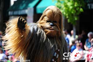 當(dāng)?shù)貢r間2014年5月17日,美國俄勒岡州麥克梅南明,第15屆麥克梅南明UFO節(jié)大游行。該節(jié)日為期4天,是為了紀(jì)念1950年Evelyn和Paul Trent目睹并拍下了一飛碟形狀的物體在他們農(nóng)場上空盤旋的照片。圖片來源:Alex Milan Tracy/東方IC