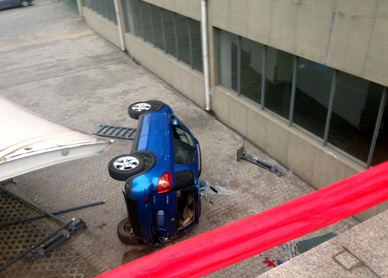 10.女司機倒車墜下6米高臺 幸好人沒事兒