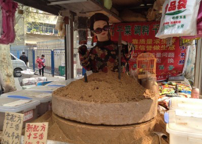 今天上午,在前進(jìn)路伊河路口,一輛賣(mài)調(diào)味品的小貨車上,一身穿紅旗袍帶墨鏡的“妙齡女郎”動(dòng)作嫻熟地推動(dòng)石磨加工十三香。老板唐師傅笑著說(shuō)自從裝上美女機(jī)器人幫忙推磨后,生意好了不少。