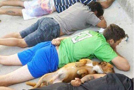 巴西警方最近搗毀了一個(gè)毒販老巢。警察剛破門(mén)的時(shí)候毒販家的看門(mén)狗還對(duì)著警察狂叫,后來(lái)發(fā)現(xiàn)它的主人被警察制服了以后,居然也跟著主人一樣自覺(jué)躺在地上一動(dòng)不動(dòng)了……