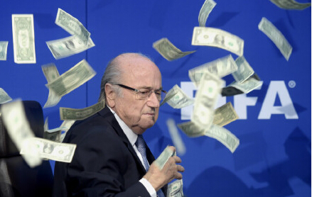 國際足聯(lián)召開新聞發(fā)布會(huì),宣布新主席選舉將在2016年2月26日舉辦,不過發(fā)布會(huì)發(fā)生一個(gè)插曲,喜劇演員李-尼爾森突然闖入,他向布拉特不斷揮舞鈔票,并且諷刺道,”韓國拿下2026年世界杯的錢夠了吧!“隨后他把錢全都扔在了布拉特的臉上,后者一臉驚慌。