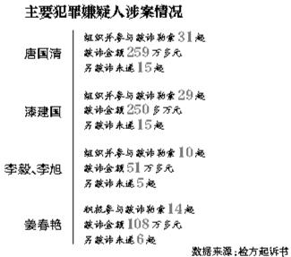 起訴書中,唐國清、漆建國、李毅被認(rèn)為是組織領(lǐng)導(dǎo)者;姜春艷積極參與并協(xié)助唐國清等人管理其他人。上述4人被認(rèn)為是主犯。