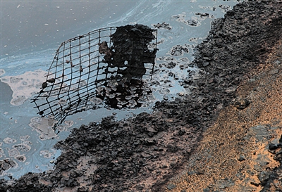 未經(jīng)處理的廢水排入后,經(jīng)過自然蒸發(fā)沉淀下來的黏稠物,這些物質(zhì)被用鏟車鏟出,直接埋在沙漠里面。