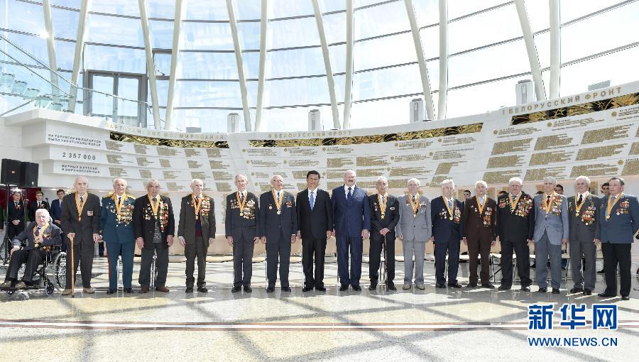 5月11日,國家主席習近平同白俄羅斯總統(tǒng)盧卡申科在明斯克衛(wèi)國戰(zhàn)爭歷史博物館會見15名白俄羅斯第二次世界大戰(zhàn)老戰(zhàn)士代表。 新華社記者謝環(huán)馳 攝