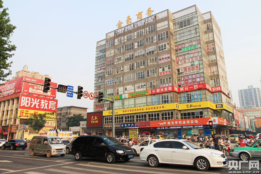 2015年5月26日,河南省安陽市,人民大道與紅旗路交叉口的一棟商業(yè)樓的窗戶上掛滿了輔導班的廣告,從小學、中學的學習輔導到海外留學的培訓,甚至還有幾家“培養(yǎng)情商”、“開發(fā)腦力”的新型輔導班廣告。這棟商業(yè)樓儼然變成了一棟輔導班大樓,市民戲稱輔導班也有了“一條龍”式的服務。