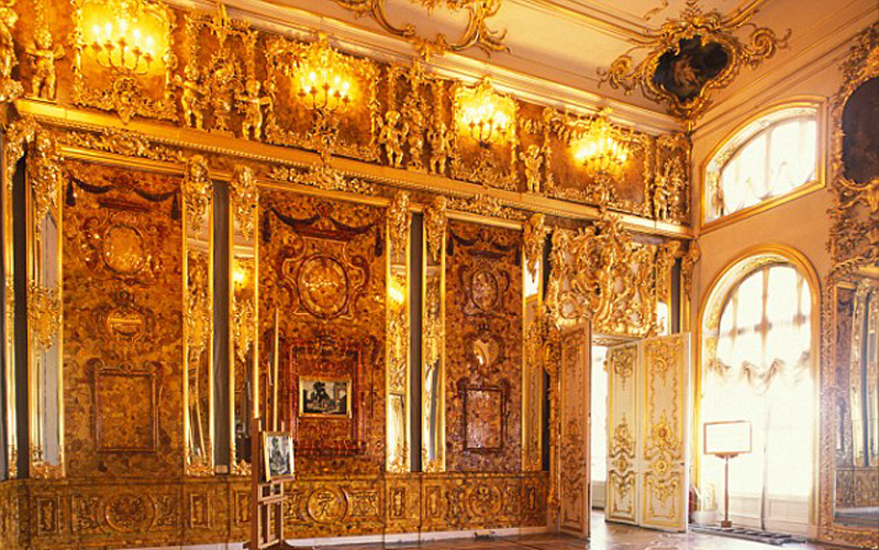 據(jù)悉,所謂的琥珀屋最初據(jù)說只是一個琥珀櫥柜,但最終被擴大為琥珀屋,共用掉450公斤琥珀,直到1770年才完工。納粹于1941年10月份攻陷位于圣彼得堡附近的凱瑟琳宮,并將琥珀屋拆除帶走,最終通過鐵路將琥珀屋運回當(dāng)時東普魯士的科尼斯堡城堡(Koenigsberg Castle)安放??墒窃?945年1月份,這里遭到空襲和激烈的地面攻擊,琥珀屋從此下落不明。