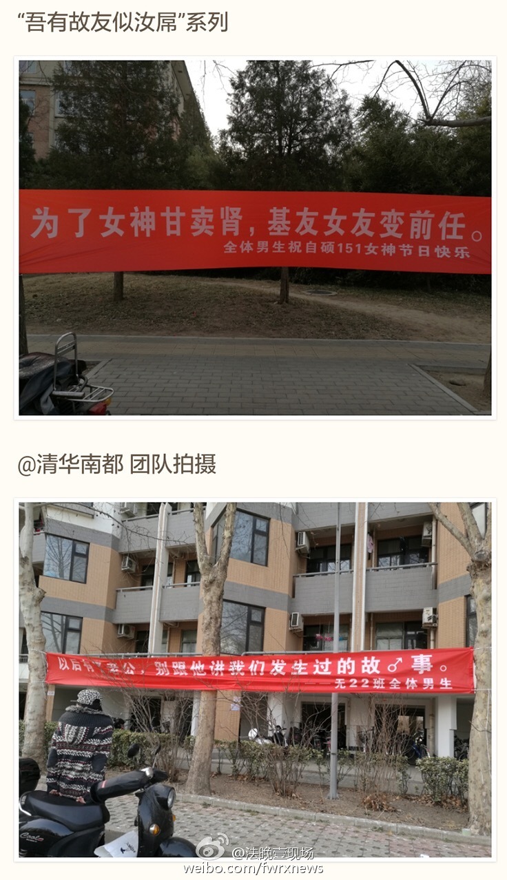 清華大學(xué)懸掛橫幅喜迎3.7女生節(jié)——文科生實(shí)在看不懂理工科的公式。
