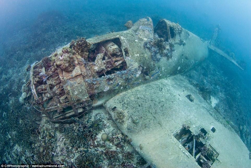 據(jù)《每日郵報(bào)》報(bào)道:二戰(zhàn)期間激戰(zhàn)被擊落的戰(zhàn)斗機(jī)近日在所羅門群島被發(fā)現(xiàn),在海底浸泡多年的戰(zhàn)斗機(jī)已經(jīng)銹跡斑斑長(zhǎng)滿了海底植物。