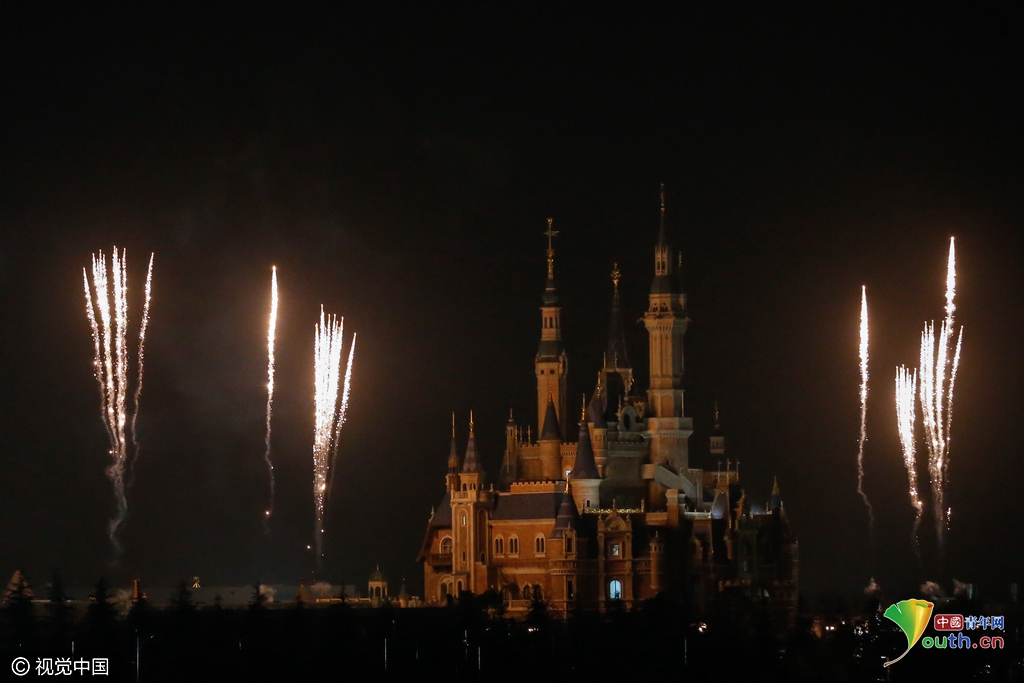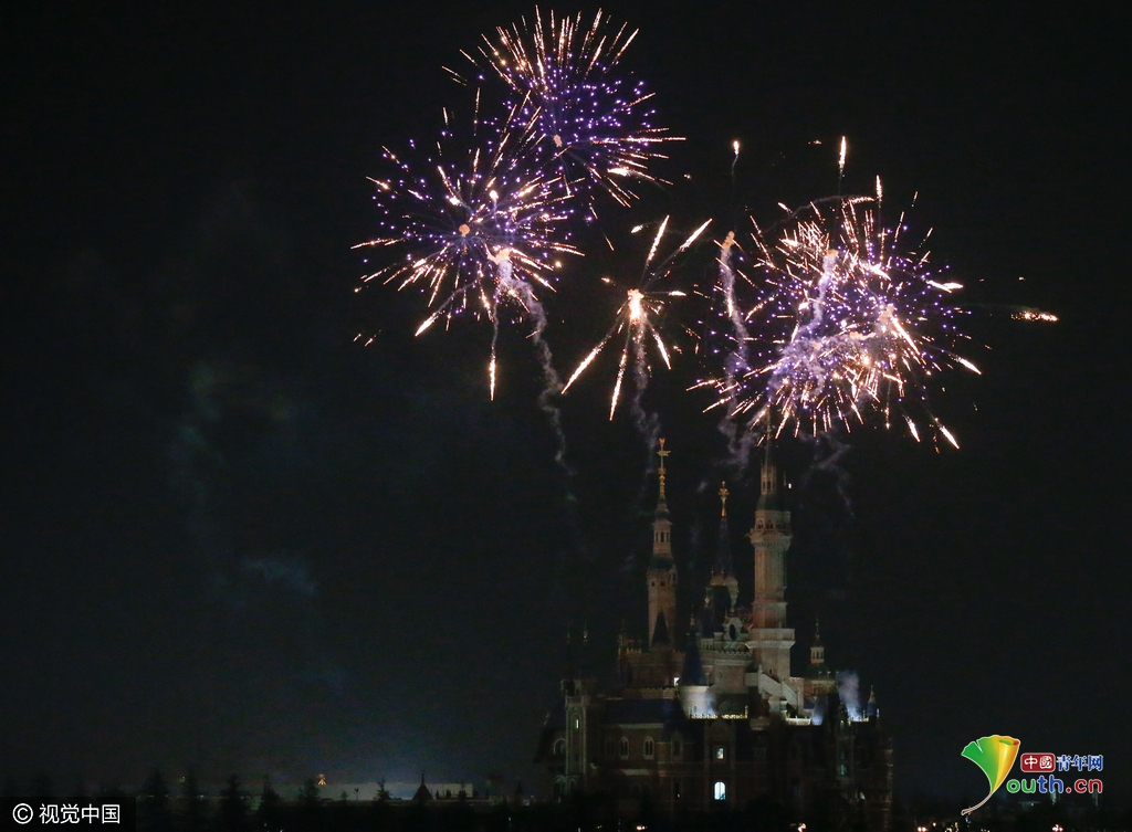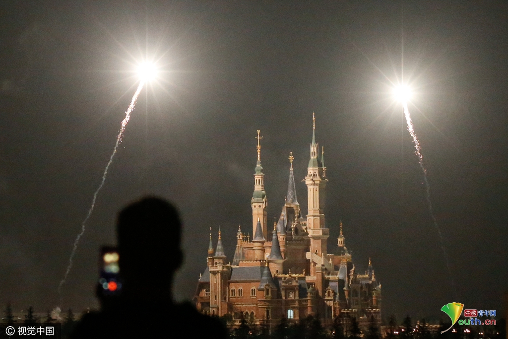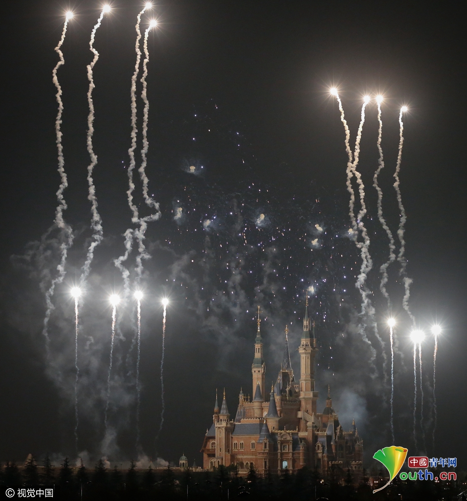 2016年3月28日晚,上海迪士尼樂園進(jìn)行了第一次煙花試放。晚上9時(shí)許,兩道明亮的煙火在人們的歡呼中劃破天際。在隨后的27分鐘內(nèi),10余組姿態(tài)各異的煙火在空中依次綻放,萬千煙花“噴薄”而出,迪士尼城堡在煙火的照射下清晰可見。