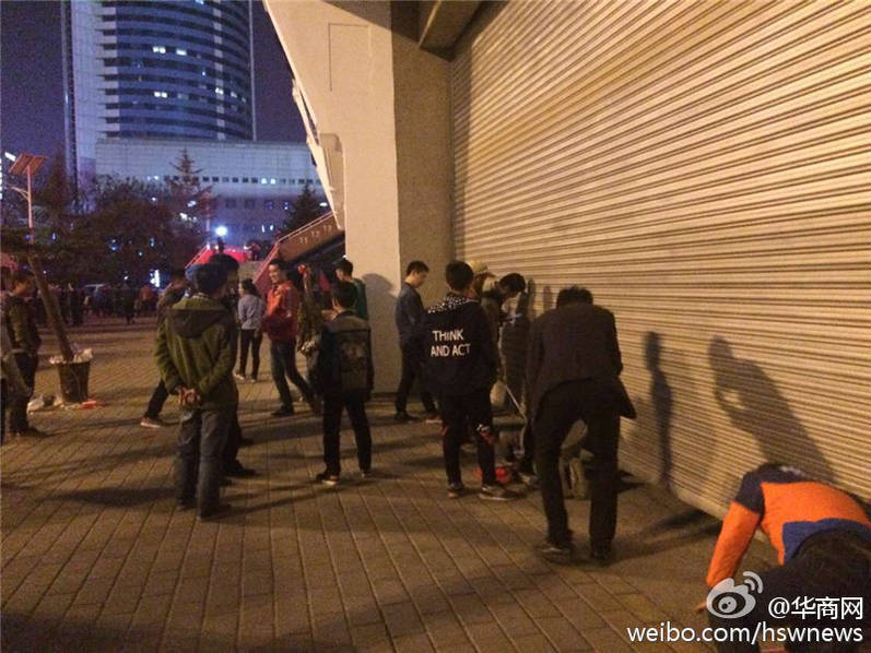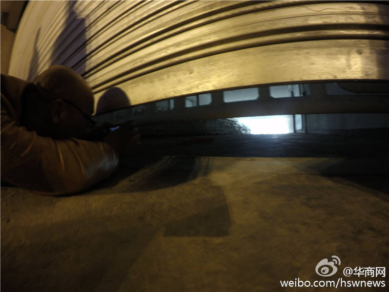 圖為沒(méi)買到票的球迷躺地上透過(guò)門縫觀看比賽。