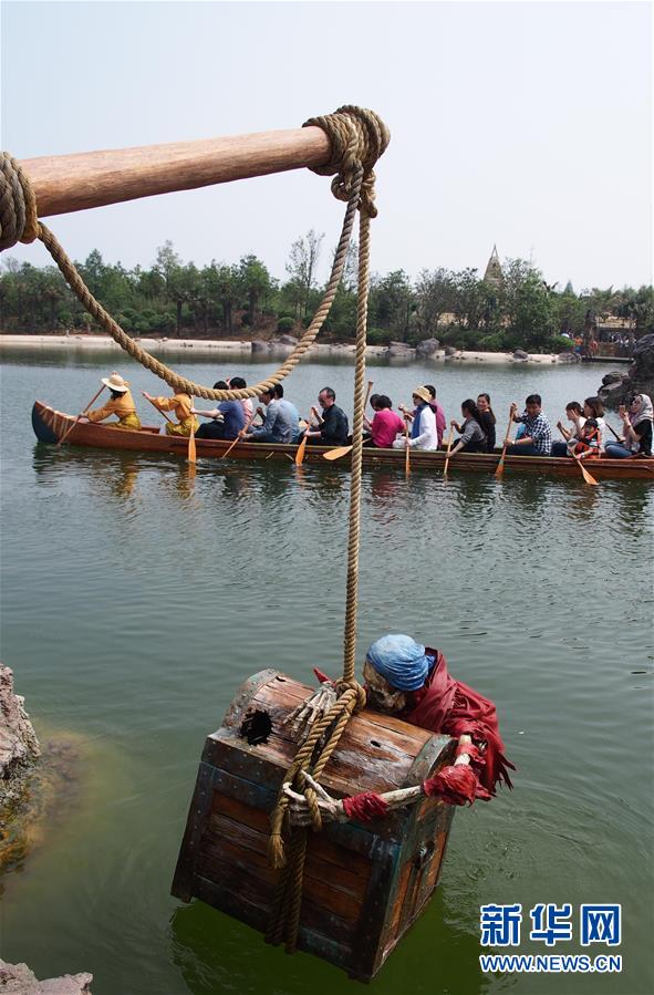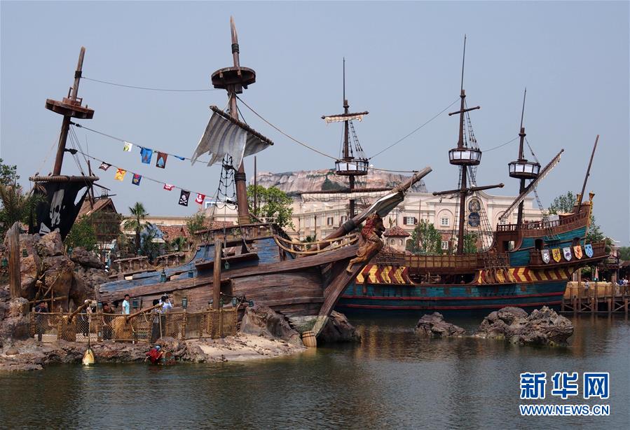 在上海迪士尼樂園里,參觀者劃著“探險家獨木舟”駛?cè)搿皩毑貫场保?月11日攝)。 5月11日是上海迪士尼樂園的又一個內(nèi)部測試日。在樂園運營管理方的安排下,上萬名參加測試的樂園建設(shè)者及其家屬參觀了園內(nèi)部分景點和游樂設(shè)施。據(jù)悉,上海迪士尼樂園將于6月16日開幕。新華社記者 任瓏 攝