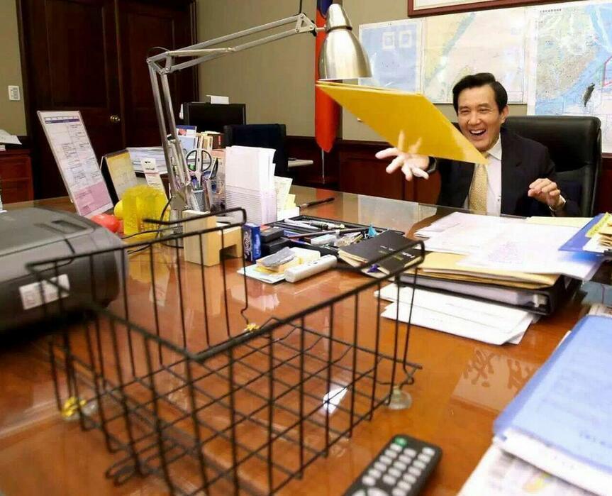 卸任前在辦公室的馬英九。馬英九,1950年出生于香港,祖籍湖南省衡山縣,1952年隨家人移居中國臺灣。2016年5月19日是他任職臺灣領導人的最后一天。大約兩年前,馬英九開始陷入執(zhí)政低谷,民望最差時支持率只剩不到10個百分點,被反對者戲稱全球聲望最低的領導人。其時,他當時也被部分言論認為是臺灣最后一個執(zhí)政的“中國人”。