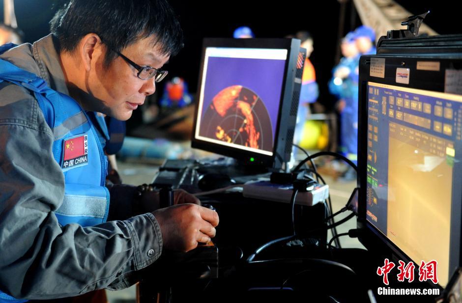 6月7日凌晨,專家正在操作水下機(jī)器人對沉船內(nèi)部進(jìn)行查勘。當(dāng)日,四川廣元沉船事故救援現(xiàn)場,參與救援的水下機(jī)器人先后兩次下水,并通過攝像頭在翻沉的“雙龍”號(hào)船內(nèi)發(fā)現(xiàn)有遇難者以及一些漂浮物品。中新社記者 劉忠俊 攝