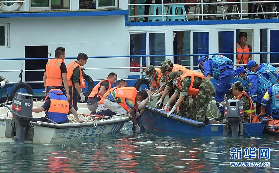 打撈遺體現(xiàn)場。截至目前,這起事故已造成2人死亡、13人失蹤,搜救工作仍在進(jìn)行中。 新華社記者薛玉斌攝 圖片來源:新華網(wǎng)
