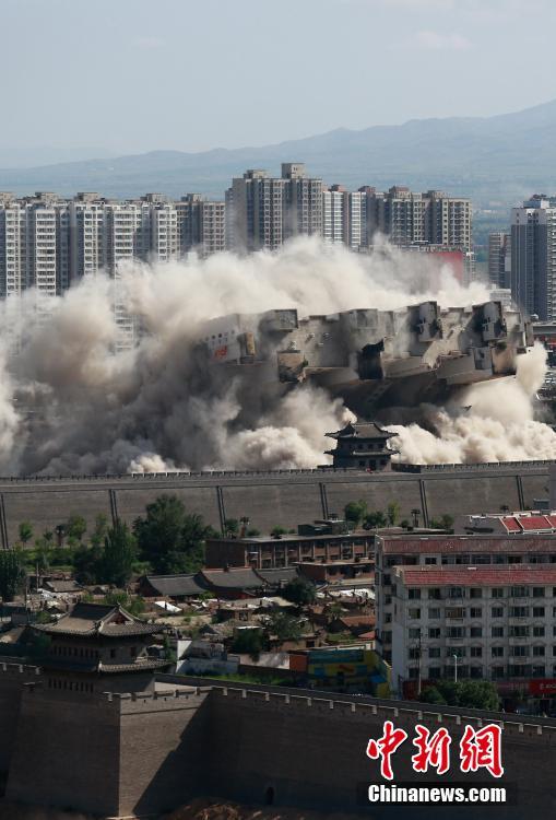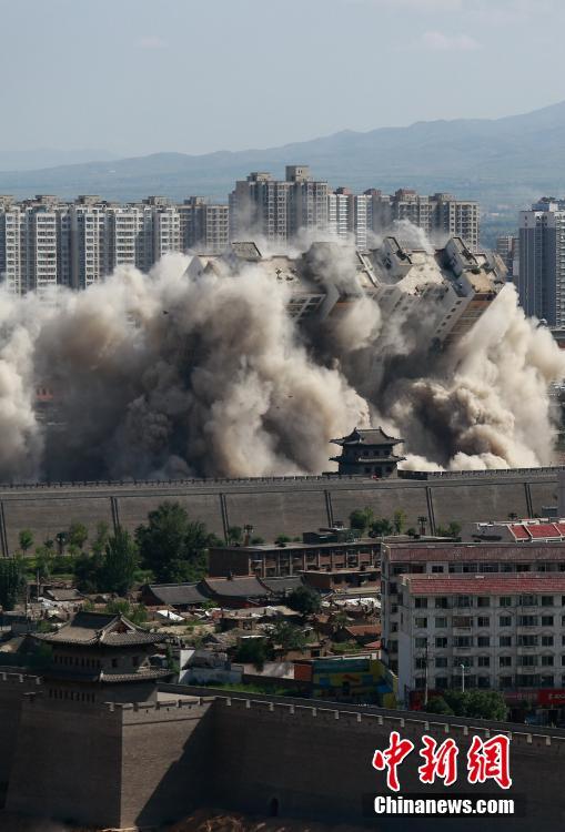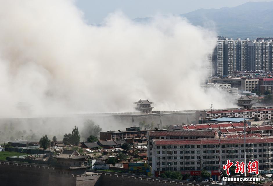 8月8日,山西大同,當(dāng)?shù)卣畬?duì)位于北城墻武定西門外的一座90米高的大樓實(shí)施爆破拆除,飛揚(yáng)的塵土與古城墻呼應(yīng)形成壯觀場面。由于該樓位置與古城保護(hù)規(guī)劃有所沖突,當(dāng)?shù)卣畬?duì)其實(shí)施爆破,以此加快古城的保護(hù)與復(fù)興。 張偉 攝