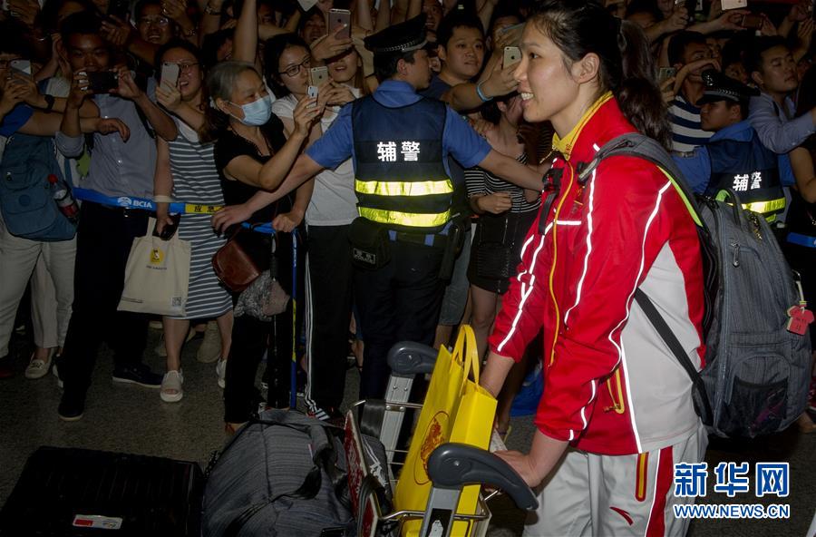 8月23日,中國女排隊員朱婷抵達北京首都國際機場。當晚,在里約奧運會獲得金牌的中國女排回國。 新華社記者陳曉偉攝