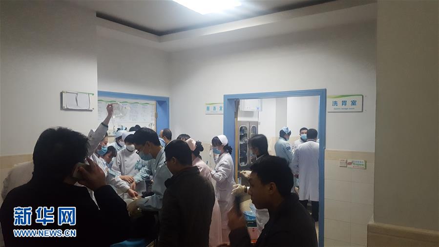 12月18日,在四川省巴中市中心醫(yī)院,醫(yī)護人員對疑似食物中毒人員進行救治(手機拍攝)。記者18日從四川省巴中市委宣傳部獲悉,當日巴州區(qū)金碑鄉(xiāng)發(fā)生一起涉及30名群眾的疑似食物中毒事件。目前,已造成2人死亡,3人病情較重。新華社發(fā)(新浪微博網友@巴中那些事 提供)