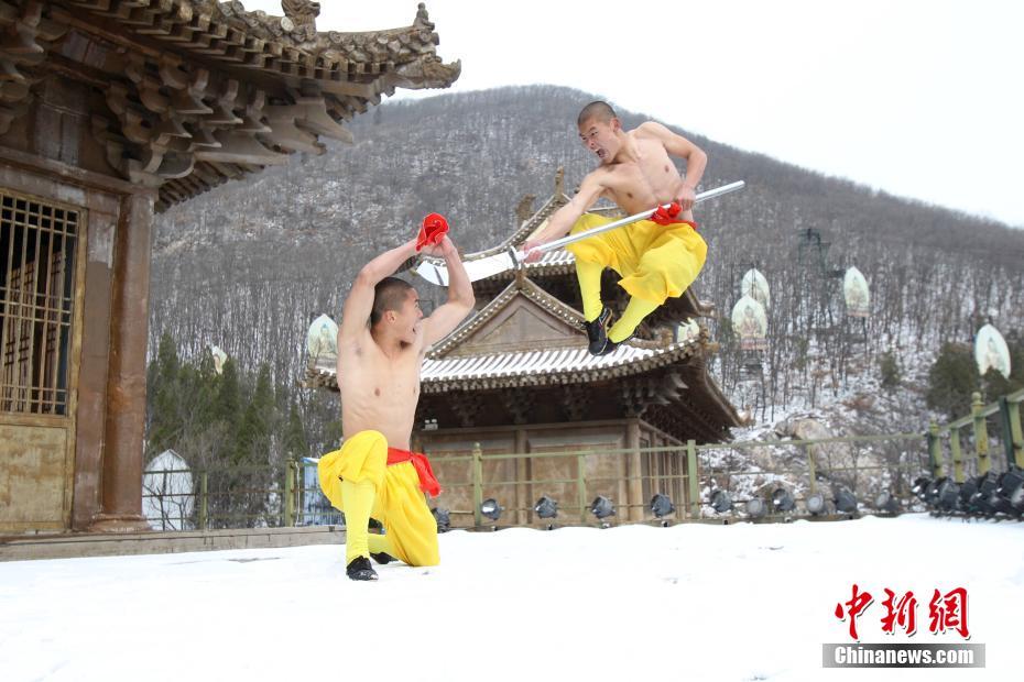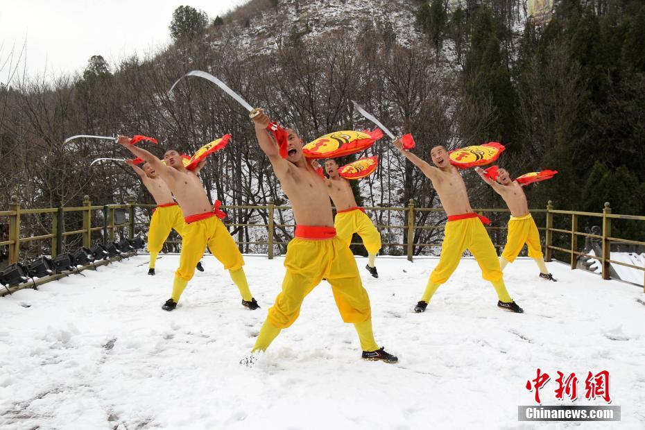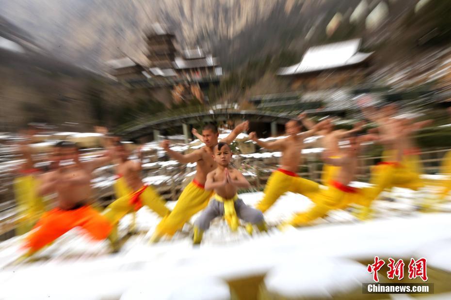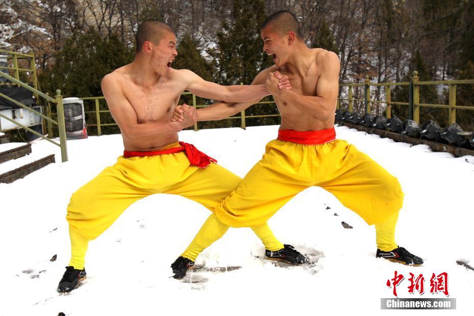 2月22日,河南出現暴雪天氣,氣溫驟降,少林寺所在地登封嵩山白雪茫茫,銀裝素裹,武僧們赤膊上身在冰天雪地里苦練少林功夫。盡管寒風刺骨,少林武僧們依舊照常練功,只見他們赤膊上陣,不懼寒冷,在雪窩里扎馬步、練少林棍、刀槍對戰(zhàn)。他們中間最小的只有6歲。 中新社記者 王中舉 攝