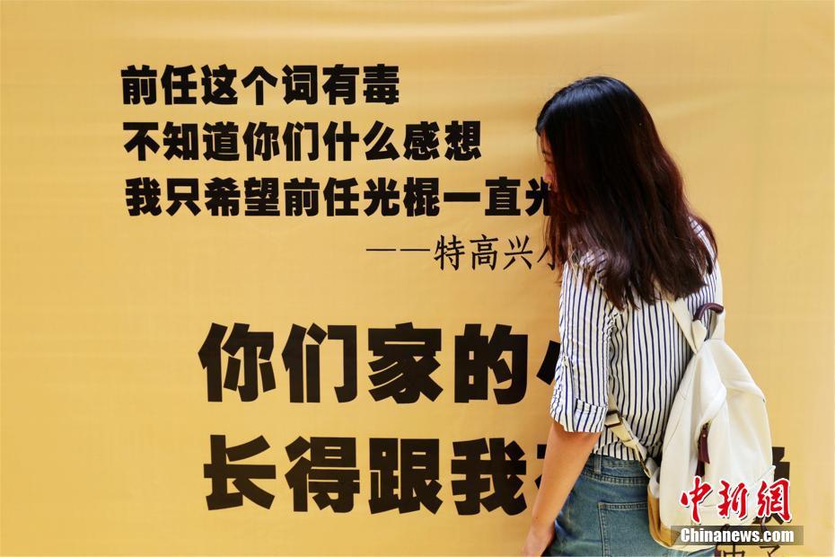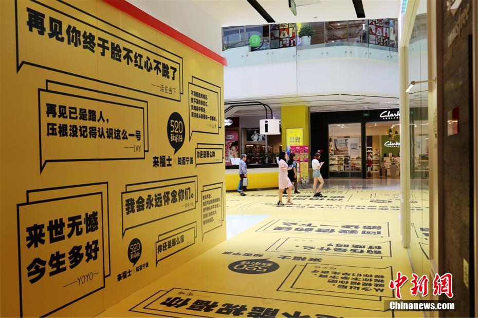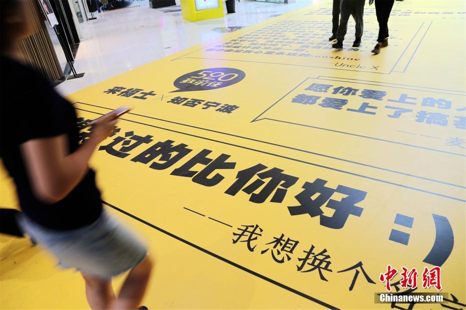 5月18日,在浙江寧波某商場(chǎng)內(nèi),近百條“致前任”留言貼滿了墻壁和地面,引發(fā)不少市民駐留圍觀。據(jù)工作人員介紹,這些句子來自網(wǎng)絡(luò)征集,最終篩選了99名網(wǎng)友留言,希望在“520”這一網(wǎng)絡(luò)情人節(jié)中,引發(fā)人們對(duì)愛的共鳴。尤勤勇 攝