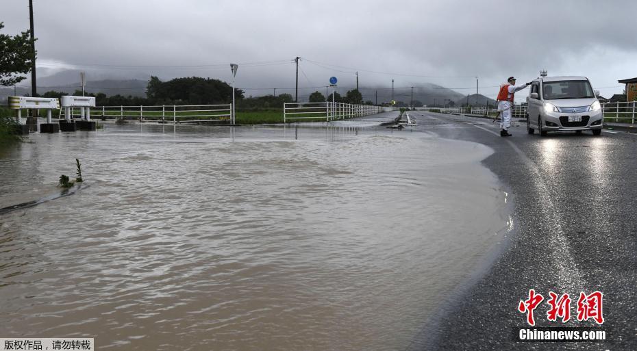 臺風為九州島帶來嚴重災情,熊本及長崎分別有6.2萬及6,400戶停電,九州島電力公司正在搶修。九州島新干線從博德站至鹿兒島中央站一度全線停駛,博德站至熊本站的南北雙向列車其后恢復正常服務。圖為九州島福岡縣,洪水淹沒道路。
