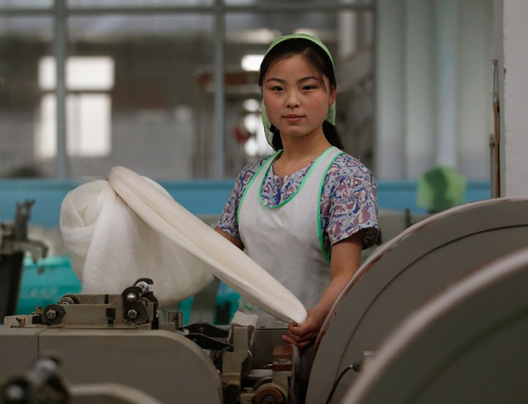 平壤紡織廠女工,這個(gè)工廠是以金日成妻子的名字命名的。
