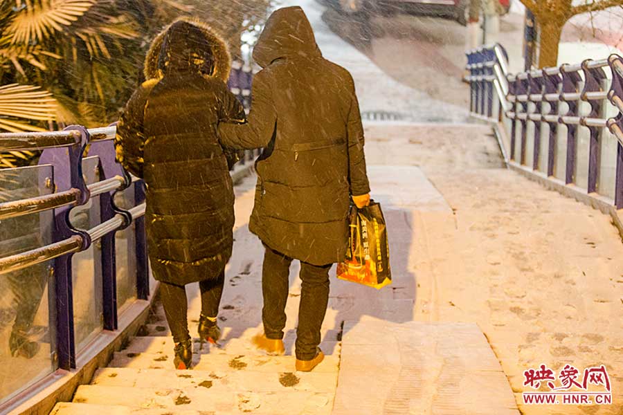 雪中攙扶下天橋