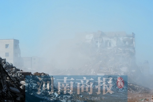 河南商報(bào)記者隨后趕到現(xiàn)場(chǎng),站在建設(shè)路與西三環(huán)向南路口,離拆遷現(xiàn)場(chǎng)還有300多米,就已經(jīng)看到灰色揚(yáng)塵升騰起數(shù)十米。