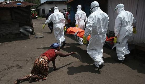 當(dāng)?shù)貢r間2014年10月10日,利比里亞首都蒙羅維亞,運尸隊將感染埃博拉死亡的尸體運去火化,親人悲痛欲絕