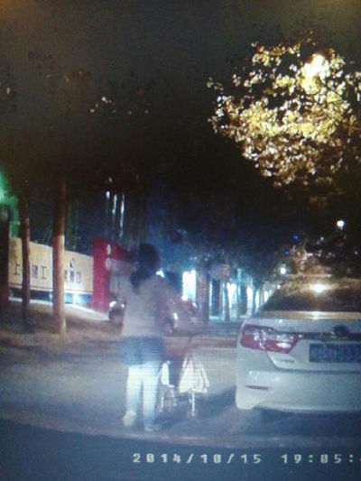 當(dāng)晚7點(diǎn)左右,童先生在市一醫(yī)院門口停車等待妻兒,一名推著童車的婦女的舉動(dòng)引起童先生注意。