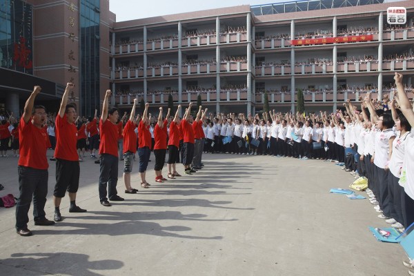 在一則2014年衡水中學(xué)高考百日誓師大會(huì)的視頻中,學(xué)生們聲音嘶啞地大喊著“專注、投入!”“我行!我行!我行!”,情緒極為高亢投入。